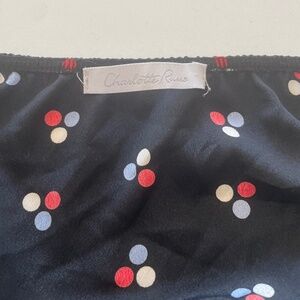 📌 ITEM DESCRIPTION: A chic Charlotte Russe halter mini dress made in the USA, featuring a flattering V-neckline, waist belt for a cinched silhouette, and delicate floral print with playful red, white, and blue dot accents. Lightweight and versatile—perfect for brunch, date nights, or summer parties.