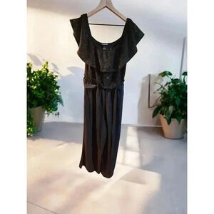 Charlotte Russe Off Shoulder Sleeve Jumpsuit Romper Size Large Sparkly Top NWT