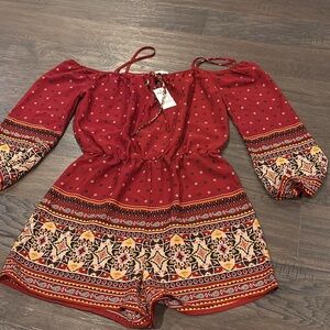Charlotte Russe Paisley print off or on shoulder long sleeve Jumpsuit Romper