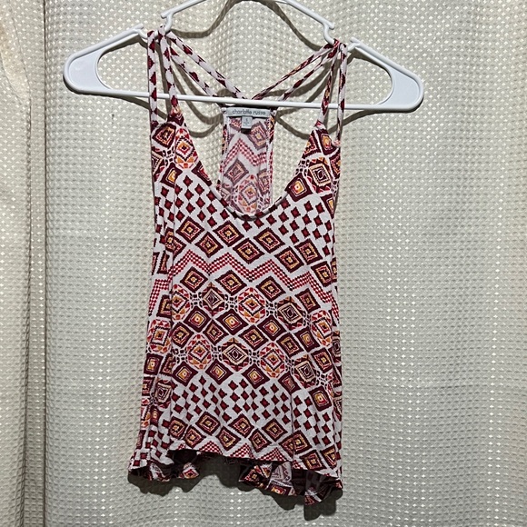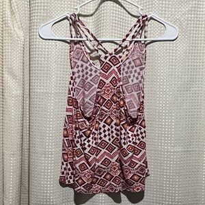 Stylish razorback crop top with pattern design. Features strappy design. Ideal for casual wear.