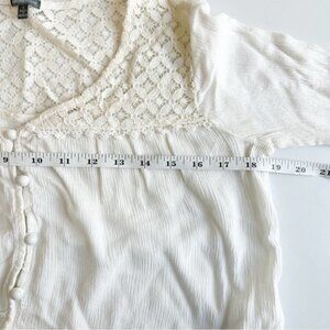 Charlotte Russe Peasant Blouse Top Shirt White Small Button Up Flowy Bell Sleeve
