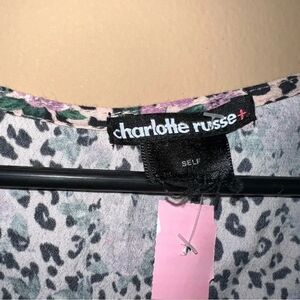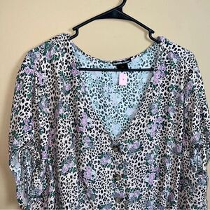 Charlotte Russe Pink Leopard & Floral Print Button Up Peplum Blouse Size XXL
