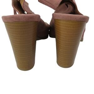 Charlotte Russe Pink Suede Open Cut Out Lace Up Ankle Boots Sandals. Mauve Dark Pink Color with Brown Stacked Block Heel. Casual or Semi Formal Spring Summer Shoes