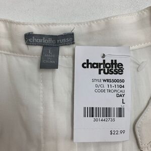 Charlotte Russe Pintuck Blouse Womens L Large White Curved Hem Lightweight Top