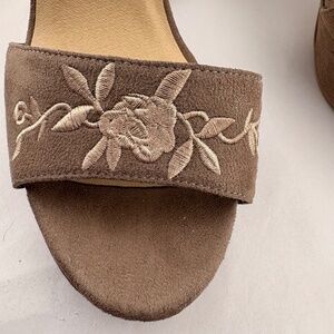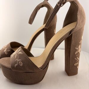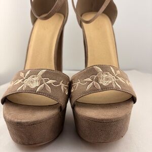 Charlotte Russe Platform Heels Beige with Gold Floral Trim size 10