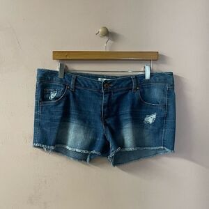Charlotte Russe Refuge Dark Medium Wash Low Rise Cut-Off Denim Shorts GUC Sz 12