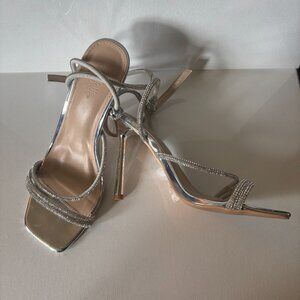 Charlotte Russe Rhinestone Strappy Silver Heels | Size 8 | Square Toe