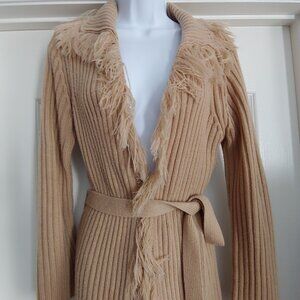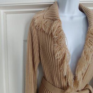 Charlotte Russe Ribbed Belted Fringe Cardigan Boho Y2k Grunge Indie Festival M