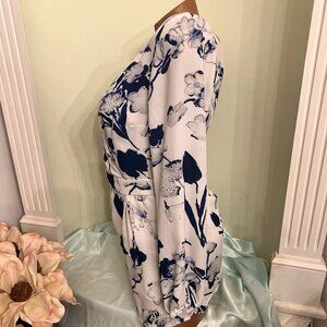 Charlotte Russe Romper. Size XS. White Blue. Lined Shorts. Crossover. Shorts are lined. Waist band insert. Shoulder to hem 28". Sleeve 22.5" with elastic at wrist. In Seam 2.3". Bust 17.5/35". Machine wash. Zip.
