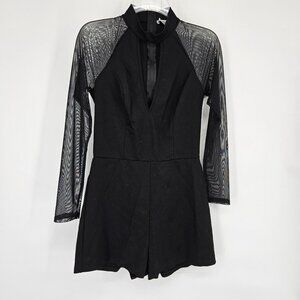 Charlotte Russe Black Romper With Sheer Mesh Sleeves & Keyhole Neckline USA