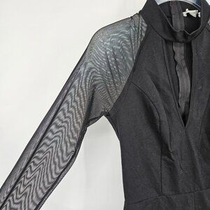 Charlotte Russe Romper Small Black Knit Sheer Mesh Sleeves Keyhole Neckline Club