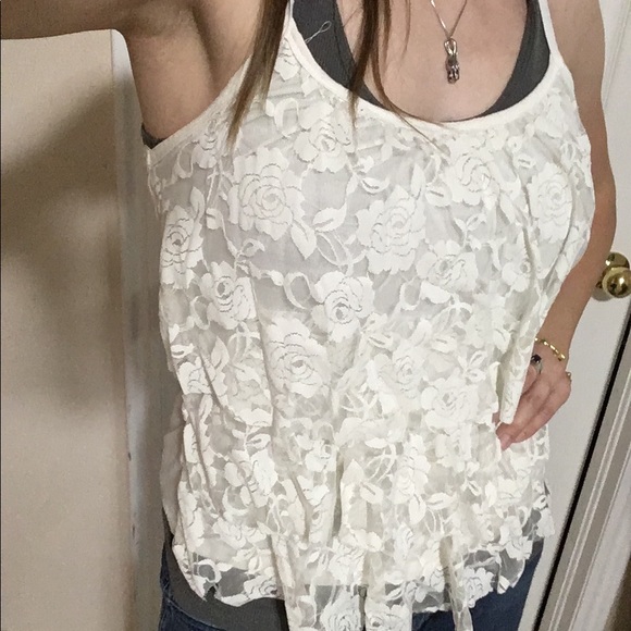 This tank top is super cute, it’s got pretty lace ruffles all down the front. I never wear it and I’m sure someone out there will get more use out of it than me! It’s white, no stains, soft fabric. Make me an offer!