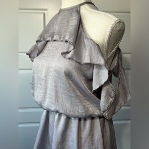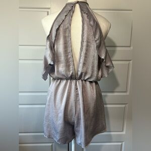 Charlotte Russe SM Silver Gray Shimmer Fringe Halter Neck Cold Shoulder Romper