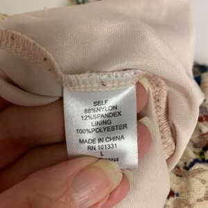 -body is 88% nylon 12% spandex lining is 100% polyester hand wash