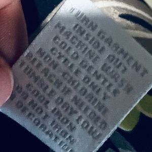 Black Satin with pale pink floral pattern, Halter style ties around neck with lace back