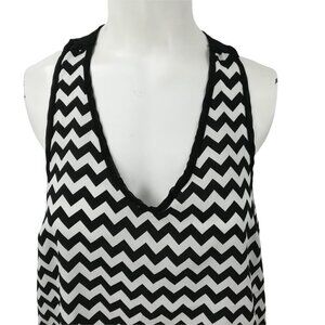 Charlotte Russe Sheer Chevron Tank Top Size M Black White Stripe Keyhole Blouse