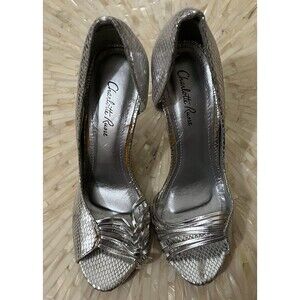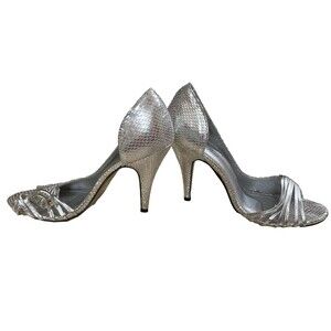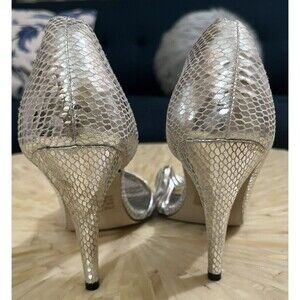 Charlotte Russe Shoes Open Toe Heels Strappy Silver Faux Snakeskin
