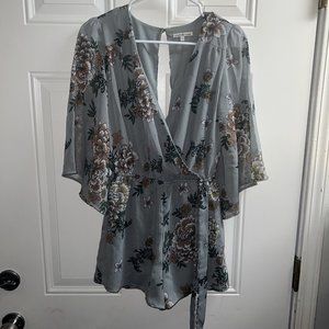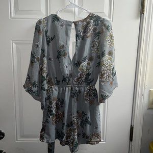 Charlotte Russe Silver Chiffon Floral Short Romper Jumpsuit Women Size S