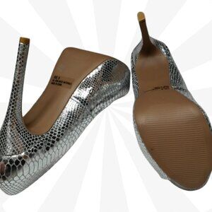 Charlotte Russe Silver Open Toe Faux Snakeskin Platform Stiletto Heels Size 8
