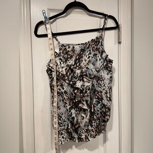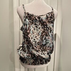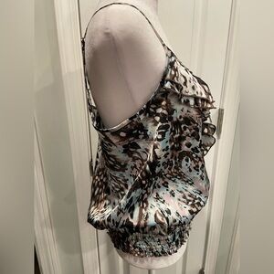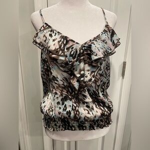 Charlotte Russe Size L Y2K Ruffle Smocked Thin Strap Animal Print Tank Top