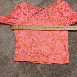 Charlotte Russe Size Medium Neon Pink Cropped Lace Top Going Out Festival Rave