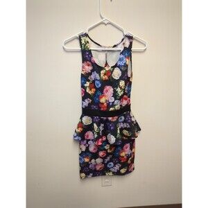 Charlotte Russe Size XS Black & Multicolor Floral Pattern Peplum Mini Dress
