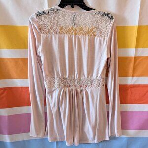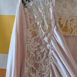 Super soft and comfortable Charlotte Russe light blush pink cardigan with lace panel details! Back is slightly gathered. Lovely drape at the front. So feminine and lightweight but cozy!