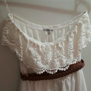 White strapless dress from Charlotte Russe. Wore to a graduation then had no use for it. Comes with original Belt. No stains. Very comfortable