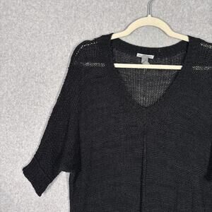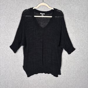 Charlotte Russe Sweater Small Crochet Sheer Tunic Boho Lagenlook Lagom Quiet Black Knit V Neck 3/4 Sleeve Pullover Lounge Comfy Academia Corp Career Work Office Business Church Classic Casual Spring Summer Oversized