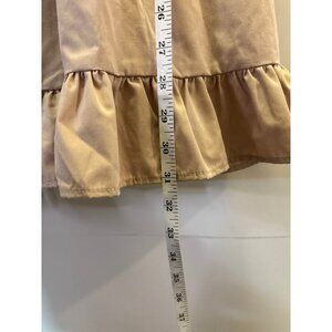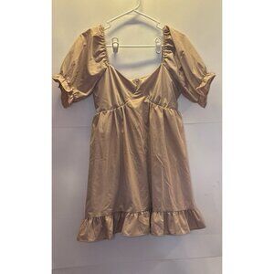 Charlotte Russe Tan ruffle dress, puffy sleeves, zipper back, little stretch flowy. Gently used, smoke free pet friendly home. No stains or holes. Great shape over all.