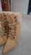 Chic tan ankle boots with fur trim. Lace-up design. High stiletto heel. woren only 2 times brought them in college but haven't wore them since actually forgot I had them