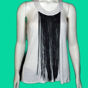 Charlotte Russe Tank Top Cream Colored with Black Fringe Size M Button Neck