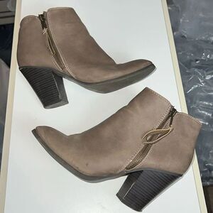 Charlotte Russe Taupe Side Zip Double Tassels Stacked Heel Booties Size 6
