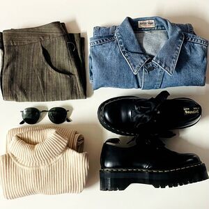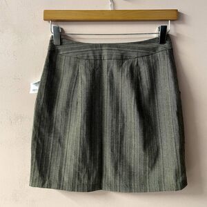 Cute dark taupe, striped mini skirt with snap buttons down the front. NWT. Never been worn. This would look cute all year round, but perfect for the Fall with a cream or black turtleneck, a vintage denim trucker jacket, and sneakers or platform Docs. Approximate measurements shown in photos. Feel free to ask questions or make an offer!