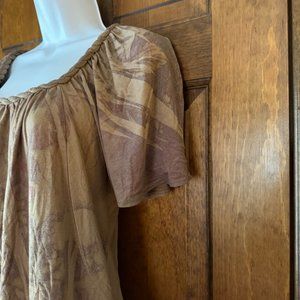 Charlotte Russe Taupe w/Mauve Flowers Pullover Top Large