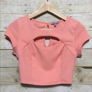 Charlotte Russe peach textured crop top with cut outs in front and back Jr size medium. Gently used.