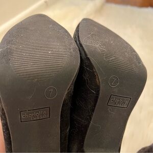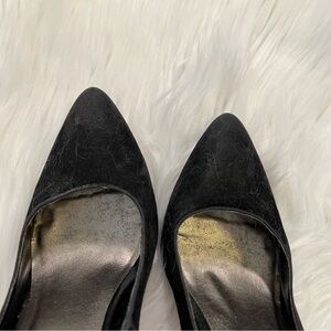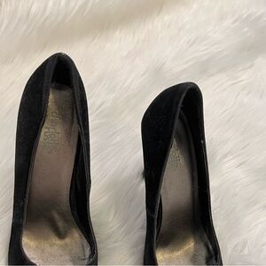 Good condition, some wear as pictured; one cap of heel is missing. Charlotte Russe. Toni 01 Pointed Toe Pumps. Black. Faux suede. Size 7. Smoke free home. No trades, offers welcome.