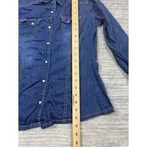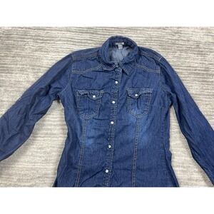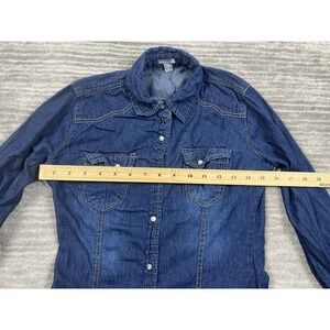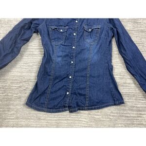 Charlotte Russe Top Womens XS Blue Dark Wash Chambray Denim Snap Front