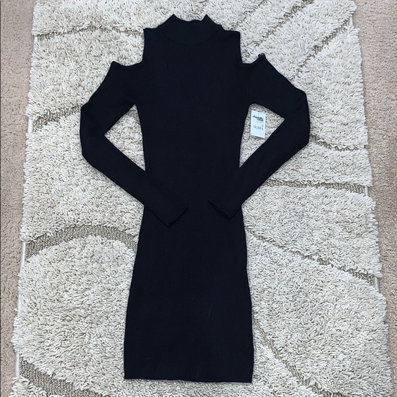 Long sleeve black turtle neck dress from Charlotte Russe. The shoulders are cut out. The dress is ribbed bodycon and is very flattering.