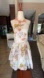 Measures 15 inches pit to pit and 34 inches shoulder to hem Stylish dress with floral patterns. Soft and elegant design. Has a partial crinoline under skirt to add just the right amount of puff to the dress zips up back also has tie around waist belt one of the loops is broken but does not effect the dress