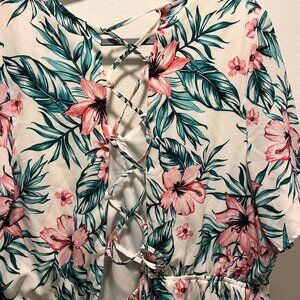 Charlotte Russe White Floral V-Neck Ruffle Chiffon Midi Dress Size 2X