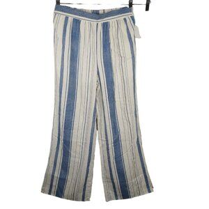 Charlotte Russe Wide Leg Pullon Pants Women Size M White Blue Stripe Linen Blend