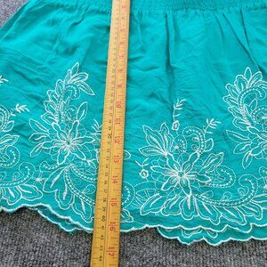 Charlotte Russe Women 14 Skirt Turquoise White Embroidered Scalloped Hem Pockets