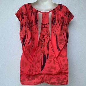 Charlotte Russe Women's Blouse Size Medium Peach/Black Round Neck Sleeveless