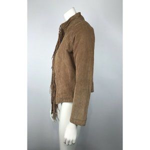Charlotte Russe Women's Jacket Vintage 100% Leather Fringe Roses Brown Size M
