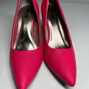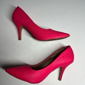 Charlotte Russe Women's Size 7,5 M Pink Snake Skin Pumps 3,5” Heels Pointed Toe
