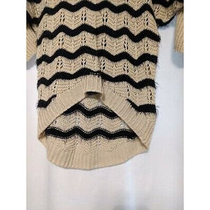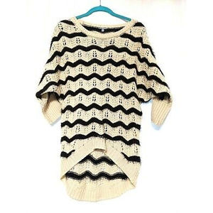 Charlotte Russe Womens Striped Tan Black Short Sleeve Open Knit Sweater Size S