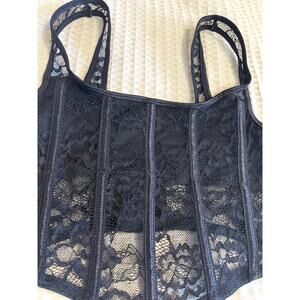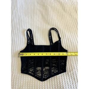 Charlotte Russe Y2K Floral Black Lace Square Neck Whimsy Goth Corset Top XS