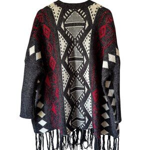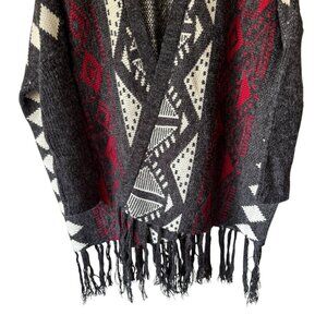 Charlotte Russe Southwestern Aztec Boho Style Fringe Cardigan Duster Open Front