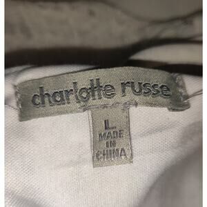 Previously Owned Charlotte Russe white lace/crochet top. Sleeveless with strappy back. Zips with metal zipper in back. Has some flaws. ( See below).